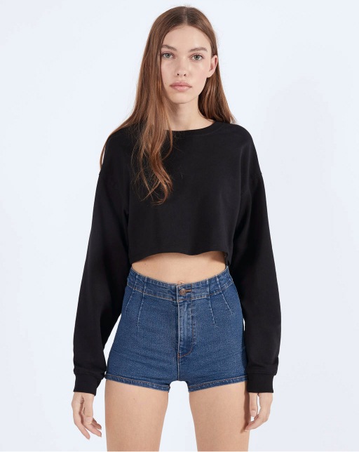 High waist denim shorts black